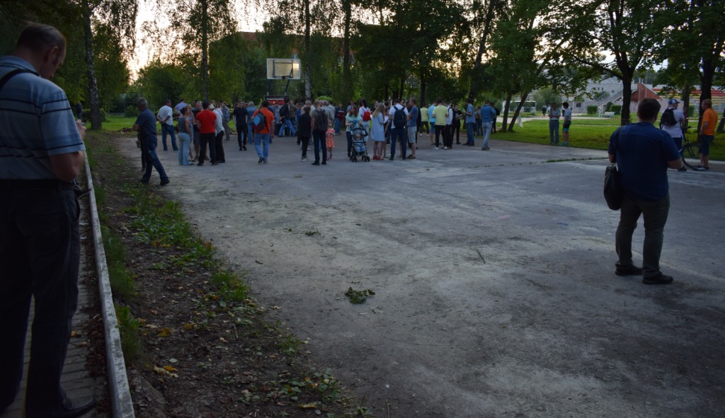 Сколько собралось участников? Активные «протестанты» разместились на половине баскетбольной площадки. И при этом перед подмостками осталось свободное пространство. Значит, протестантов было 140-160 человек. По краям баскетбольной площадки стояли и сидели на двух скамеечках любопытствующие горожане.