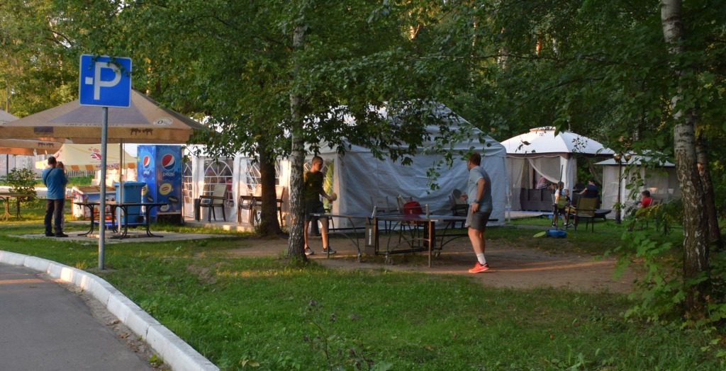 На фото: отдыхающие в кафе играют в настольный теннис. Им митинг только мешает.