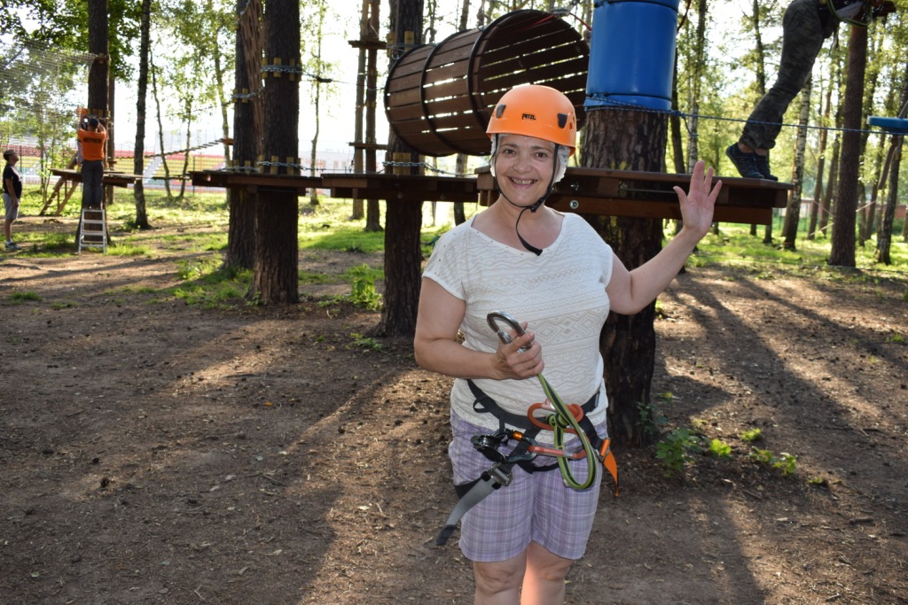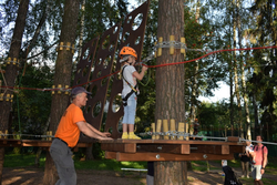 На фото: В веревочном городке стадиона "Орбита" дети и пенсионеры тренируются в прохождении сложных препятствий. Им митинг глубоко безразличен. Они довольны новым спортивным городком, созданным властями города по просьбе юбилейчан.
